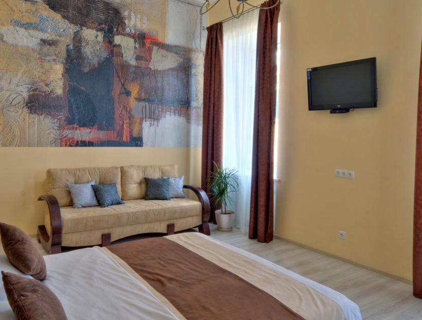 Room: The room has a double bed, built-in wardrobe, sofa, LCD TV, satellite TV, air-conditioning. All new furniture.